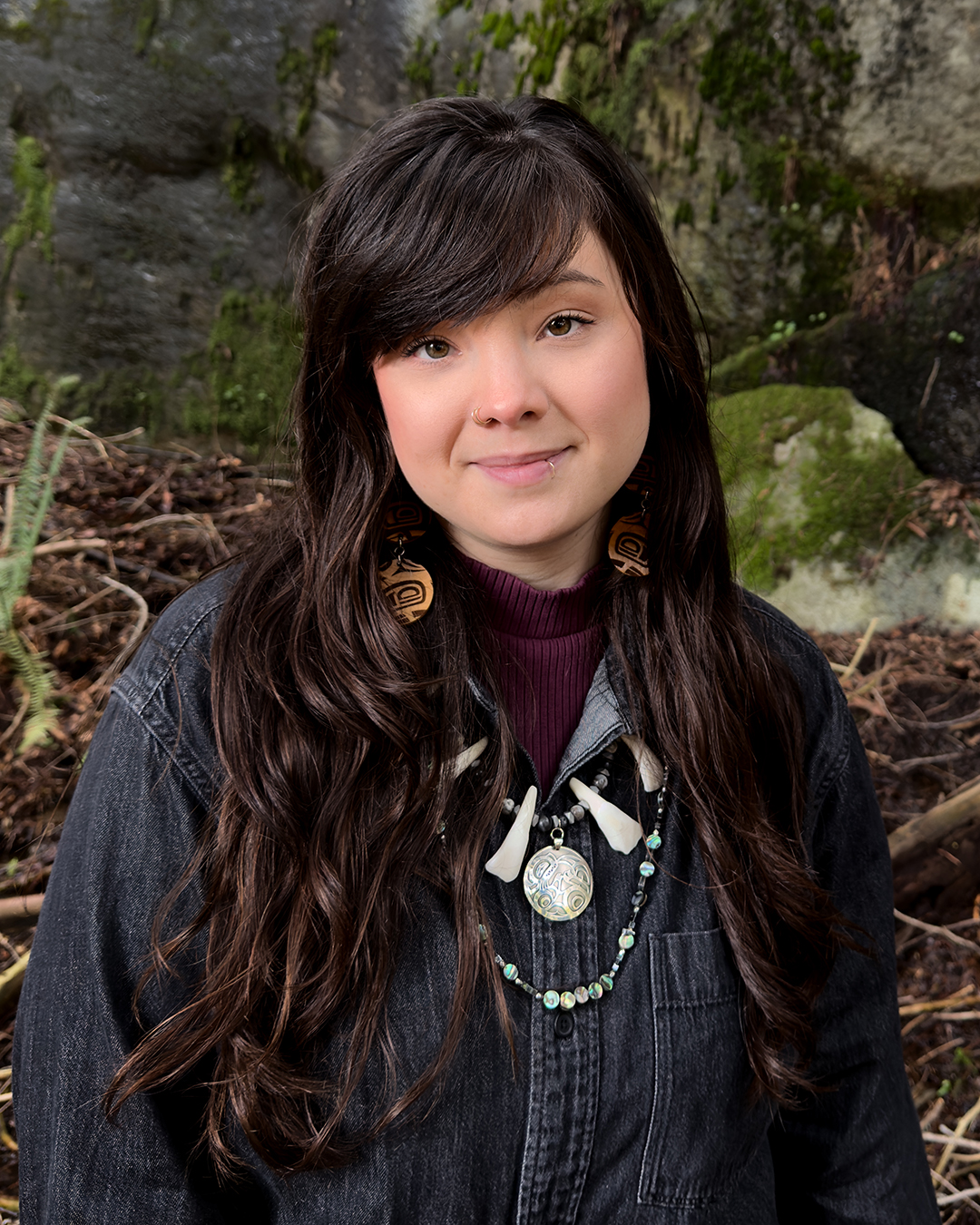 Chantelle Trainor-Matties is an Indigenous artist from Abbotsford, British Columbia. She is a Nisg̱a’a citizen, with ancestral roots in the village of Ging̱olx in the Nass Valley. She also has Métis ancestry that traces back to the Red River Settlement in Manitoba, along with a mixed European background. Chantelle grew up, lives, and works on the unceded territory of the Stó:lō peoples. She specializes in illustration, painting, design, and mural art, working for herself and taking on contract work through her small business Frettchan Studios. Her work blends contemporary Northwest Coast formline, reflecting her Nisg̱a’a roots, with cartoons and realism. She’s been reclaiming her Indigeneity through many pathways, including art and learning the Nisg̱a’a language. Chantelle’s portfolio consists of many subject matters such as flora, fauna, pop culture, and the macabre; however, she primarily highlights animals in her work and loves to find lessons we can learn from them and practice in our everyday lives.